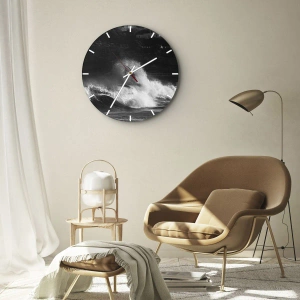 Wanduhr „Herausforderung angenommen!“ ist eine dynamische Szene, die einen Surfer zeigt, der eine mächtige Welle bezwingt. Die in einem kontrastierenden Schwarz-Weiß-Stil gehaltene Uhr zieht mit ihrer Intensität und grafischen Präzision die Blicke auf sich. Perfekt für Innenräume, in denen Energie und Charakter zählen.