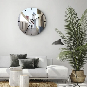 Wanduhr - Glasuhr - Eine minimalistische Straße mit der Silhouette eines Mannes im Hintergrund - 30x30cm - Sonniger Spaziergang - Moderne Wanddekoration für Wohnzimmer und Schlafzimmer ARTTOR