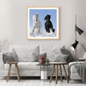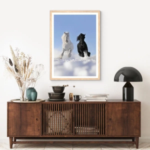 Poster in einem Rahmen aus heller Eiche - Schwarz-Weiß-Galopp - 70x100 cm