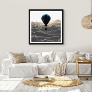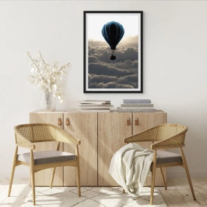 Poster in einem schwarzem Rahmen - Ein Heißluftballon vor einem Himmel mit Wolken bei Sonnenuntergang - 70x50cm - Ein Wanderer über den Wolken - Moderne Wanddekoration für Wohnzimmer und Schlafzimmer ARTTOR