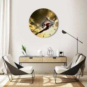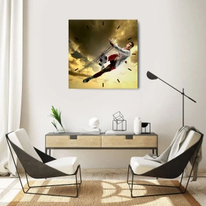 Wanduhr - Glasuhr - Ein Fußballspieler in einem dynamischen Sprung kickt den Ball in den Himmel - 30x30cm - Fußballhimmel - Moderne Wanddekoration für Wohnzimmer und Schlafzimmer ARTTOR