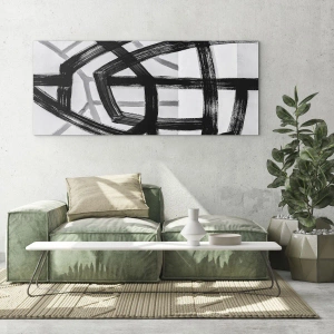 Glasbild - Bild auf glas - Schwarze und graue Pinselstriche erzeugen ein dynamisches Liniennetz. - 70x50cm - Bautiefe - Moderne Wanddekoration für Wohnzimmer und Schlafzimmer ARTTOR