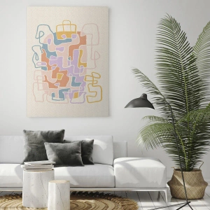 Glasbild - Bild auf glas - Ein buntes Labyrinth aus Linien auf cremefarbenem Hintergrund - 50x70cm - Labyrinth – ein freudiges Abenteuer - Moderne Wanddekoration für Wohnzimmer und Schlafzimmer ARTTOR