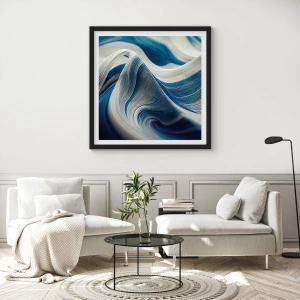 Poster in einem schwarzem Rahmen - Fließfähigkeit von Blau und Weiß - 70x100 cm