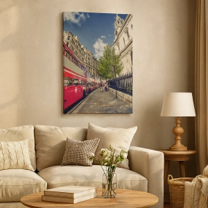 Bild auf Leinwand - Leinwandbild - Londoner Straße in Grau und Rot - 50x50 cm