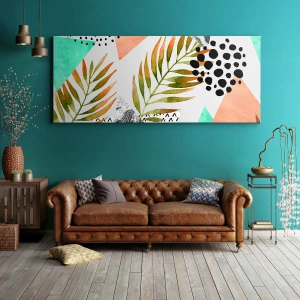 Wandbild – Palmblatt-Dekoration – Tropisches Muster mit Blättern und geometrischen Formen