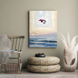 Die Leinwand wird über den Rahmen gespannt. Die Seiten und Kanten werden gedruckt, um das Bild fortzusetzen. Das Bild ist fertig zum Aufhängen an der Wand. Jedes Produkt hat einen am Rahmen befestigten Anhänger und ein Montageset (Schraube + Stift).