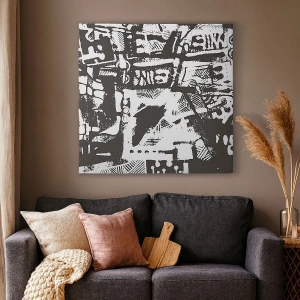 Bild auf Leinwand - Leinwandbild - Abstraktes monochromes Retro-Muster - 100x70cm - Ordnung oder Chaos? - Moderne Wanddekoration für Wohnzimmer und Schlafzimmer ARTTOR