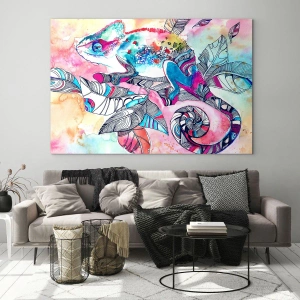 Der Druck „Buntes Chamäleon zwischen Blättern im Aquarellstil“ ist eine ausgezeichnete Wahl für alle, die nach einer Dekoration suchen, die ihrem Interieur Harmonie, Natur und eine künstlerische Note verleiht.