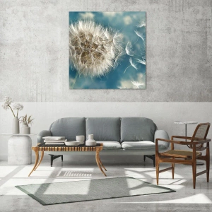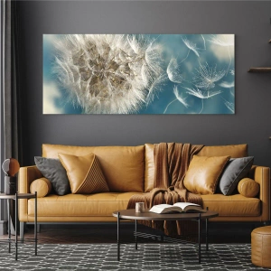 Glasbild - Bild auf glas - Ein verwelkter Löwenzahn vor blauem Himmel - 80x120cm - Engelsatem - Moderne Wanddekoration für Wohnzimmer und Schlafzimmer ARTTOR