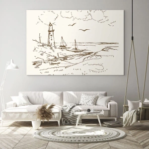 Wandbild – Umriss von Sommererinnerungen – Skizze eines Leuchtturms in einer Küstenlandschaft