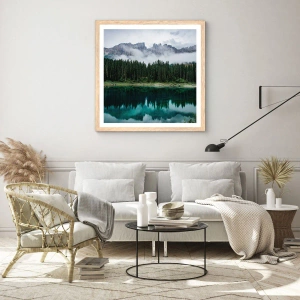 • Landschaft, Berge, See, Landschaften, Natur, Für das Büro, für das Arbeitszimmer, für das Esszimmer, für den Flur, für das Wohnzimmer, für das Schlafzimmer, Grau Grün, Quadrat