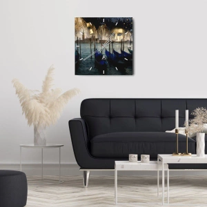Wanduhr - Glasuhr - Venezianische Karnevalsmasken und Gondeln vor der Kulisse der Stadt und des Wassers - 30x30cm - Es ist Zeit, den Karneval zu starten - Moderne Wanddekoration für Wohnzimmer und Schlafzimmer ARTTOR