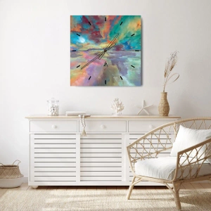Die Wanduhr „Two Skies“ präsentiert ein außergewöhnliches Motiv eines bunten Himmels voller abstrakter Wolken. Dieses reizvolle Design verbindet perfekt künstlerischen Ausdruck mit Funktionalität und schafft ein einzigartiges Dekorationselement.