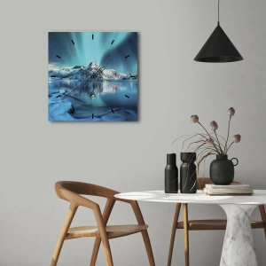 Wanduhr - Glasuhr - Aurora Borealis über schneebedeckten Bergen und einem See - 30x30cm - Lichtnacht - Moderne Wanddekoration für Wohnzimmer und Schlafzimmer ARTTOR