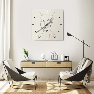 Wanduhr - Glasuhr - Ein minimalistisches Porträt eines Frauengesichts - 30x30cm - Umriss der Sinnlichkeit - Moderne Wanddekoration für Wohnzimmer, Küche und Schlafzimmer ARTTOR