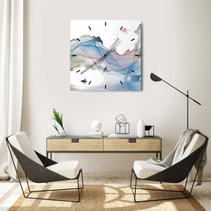 Wanduhr - Glasuhr - Farbenfrohe, ätherische Berge mit einem Boot auf der Wasseroberfläche - 30x30cm - Zu den Kristallbergen - Moderne Wanddekoration für Wohnzimmer, Küche und Schlafzimmer ARTTOR