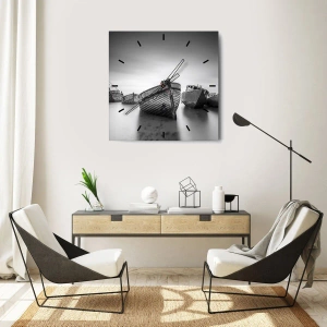 Wanduhr - Glasuhr - Alte Fischerboote, die an der Küste gestrandet sind, in Schwarz und Weiß - 30x30cm - Nur Erinnerungen ... - Moderne Wanddekoration für Wohnzimmer, Küche und Schlafzimmer ARTTOR