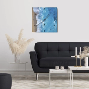 Wanduhr - Glasuhr - Eine Vogelperspektive auf Meereswellen, die auf einen Sandstrand krachen - 30x30cm - Die Kraft des Blaus - Moderne Wanddekoration für Wohnzimmer, Küche und Schlafzimmer ARTTOR