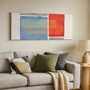 Bild auf Leinwand - Leinwandbild - Geometrische Komposition mit farbigen Blöcken und Linien - 50x70cm - Der Geist und der Buchstabe der Geometrie - Moderne Wanddekoration für Wohnzimmer und Schlafzimmer ARTTOR