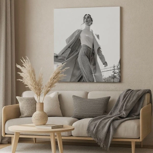 • Frau, Mode, Schwarz und Weiß, Schwarzweiß, Menschen, Mode, Für das Esszimmer, für den Flur, für das Wohnzimmer, für das Schlafzimmer, Weiß, Grau, Schwarz und Weiß, Quadrat