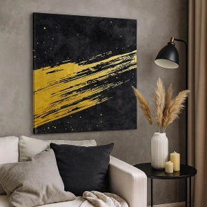 Bild auf Leinwand - Leinwandbild - Schwarzer Hintergrund mit dynamischen goldenen Pinselstrichen - 50x70cm - Sprung in den Hyperraum - Moderne Wanddekoration für Wohnzimmer und Schlafzimmer ARTTOR