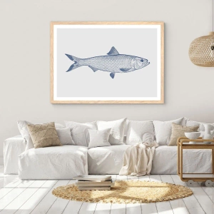 • Fisch, Meerestier, Küstenstil, Gastronomie, Maritim, Kunst, Tiere, Für das Büro, für das Arbeitszimmer, für das Esszimmer, für die Küche, für das Badezimmer, für den Flur, für das Wohnzimmer, für das Schlafzimmer, , Weiß Blau, Horizontal