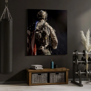 Die Leinwand wird über den Rahmen gespannt. Die Seiten und Kanten werden gedruckt, um das Bild fortzusetzen. Das Bild ist fertig zum Aufhängen an der Wand. Jedes Produkt hat einen am Rahmen befestigten Anhänger und ein Montageset (Schraube + Stift).