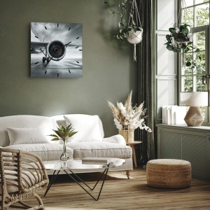 Die Uhr besteht aus 4 mm dickem Sicherheitsglas Glas. Die Herstellungstechnologie der Uhr entspricht der Sicherheitsklasse 2B2 gemäß der Norm PN-EN 12600: 2004, die Stoßfestigkeit garantiert. Die Uhr auf dem Glas ist bereit zu hängen - es hat einen Metallanhänger, einen Anhänger auf der Rückseite der Uhr und einen Schaumstoffabstand, der einen gleichmäßigen Abstand zwischen der Uhr und der Wand reguliert. Die Uhr hat einen geräuschlosen Schwimmmechanismus, der von einer 1,5-V-Batterie betrieben wird - AA-Batterie inbegriffen).