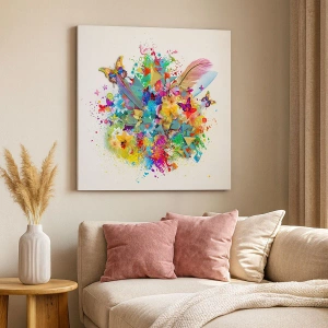 Wandbild - Blumenstrauß der Freude - Farbenfrohes Motiv mit Blumen und Schmetterlingen