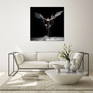 Glasbild - Bild auf glas - Eine Tänzerin in Pulverwolken vor schwarzem Hintergrund - 70x50cm - Elfen existieren - Moderne Wanddekoration für Wohnzimmer und Schlafzimmer ARTTOR