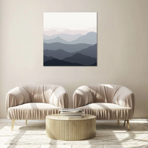 Glasbild - Bild auf glas - Dezente Bergschichten in Pastelltönen - 70x50cm - Wellen der Berge - Moderne Wanddekoration für Wohnzimmer und Schlafzimmer ARTTOR