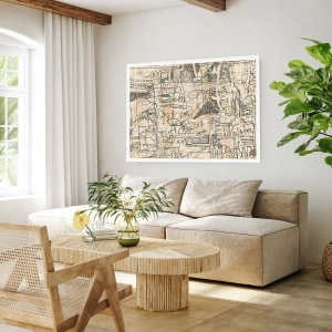 Poster - Abstraktes geometrisches Muster in Beige- und Schwarztönen - 50x70cm - Es wartet darauf, entschlüsselt zu werden - Moderne Wanddekoration für Wohnzimmer und Schlafzimmer ARTTOR