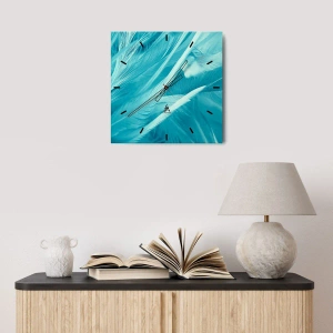Wanduhr - Glasuhr - Blaue Federn in einer zarten Aufnahme - 30x30cm - In Pulver ertrinken - Moderne Wanddekoration für Wohnzimmer, Küche und Schlafzimmer ARTTOR