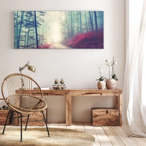 Es ist gut, früh aufzustehen ist ein Leinwandbild, das einen malerischen Waldweg zeigt, umgeben von Nebel und zarten Farben. Die Komposition voller Geheimnis und Subtilität bringt Ruhe und Harmonie in jedes Interieur und regt zum Nachdenken über die Schönheit der Natur an.