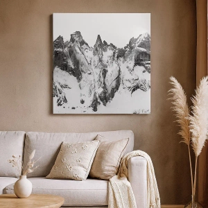 Bild auf Leinwand - Leinwandbild - Schwarz-weiße schneebedeckte Berggipfel - 50x70cm - Gefährlicher Granitgrat - Moderne Wanddekoration für Wohnzimmer und Schlafzimmer ARTTOR