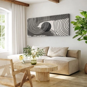Bild auf Leinwand - Leinwandbild - Geometrische Linien und Ovale in monochromen Farbtönen - 70x50cm - Oval gewinnt - Moderne Wanddekoration für Wohnzimmer und Schlafzimmer ARTTOR