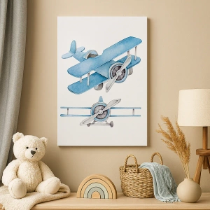 Der Leinwanddruck "Born to Win" ist eine einzigartige Dekoration, die blaue Flugzeuge im Retro-Stil darstellt. Seine subtilen Farben und das minimalistische Design machen es zu einer perfekten Ergänzung für ein Kinderzimmer und moderne Räume.