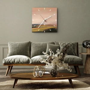 Wanduhr - Glasuhr - Eine Landschaft in Rosa- und Goldtönen - 30x30cm - In Rosatönen - Moderne Wanddekoration für Wohnzimmer und Schlafzimmer ARTTOR