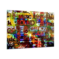 Glasbild - Bild auf glas - Bunte Inschriften auf einem künstlerischen Mosaikhintergrund - 100x70cm - Alle Farben des Klangs - Moderne Wanddekoration für Wohnzimmer und Schlafzimmer ARTTOR
