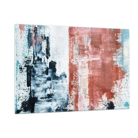 Glasbild - Bild auf glas - Eine abstrakte Kombination aus Blau und Rostrot - 120x80cm - Fünfzig-Fünfzig abstrakt - Moderne Wanddekoration für Wohnzimmer und Schlafzimmer ARTTOR
