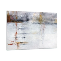 Glasbild - Bild auf glas - Ein abstraktes Gemälde mit einer subtilen Kombination aus Grau, Weiß und Gold. - 120x80cm - Hinter dem Luftvorhang - Moderne Wanddekoration für Wohnzimmer und Schlafzimmer ARTTOR