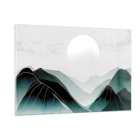 Glasbild - Bild auf glas - Berglandschaft mit weißer Sonne und goldenen Linien - 120x80cm - In voller Majestät - Moderne Wanddekoration für Wohnzimmer und Schlafzimmer ARTTOR