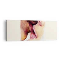 Bild auf Leinwand - Leinwandbild - Romantisches Aquarellporträt eines sich küssenden Paares - 140x50cm - Hälfte gefunden? - Moderne Wanddekoration für Wohnzimmer und Schlafzimmer ARTTOR