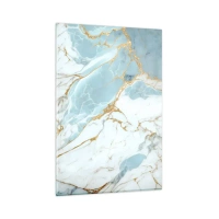 Glasbild - Bild auf glas - Blaue und weiße Marmormuster mit zusätzlichen goldenen Adern - 80x120cm - Reichtum des Steins - Moderne Wanddekoration für Wohnzimmer und Schlafzimmer ARTTOR