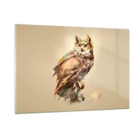 Glasbild - Bild auf glas - Abstrakte Eule mit künstlerischer Malerei - 120x80cm - Die klügste Eule - bestätigt den Eichenwald - Moderne Wanddekoration für Wohnzimmer und Schlafzimmer ARTTOR