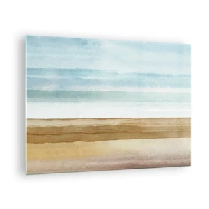 Glasbild - Bild auf glas - Ein minimalistischer Strand im pastellfarbenen Aquarellstil - 70x50cm - Trost - Moderne Wanddekoration für Wohnzimmer und Schlafzimmer ARTTOR