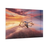 Glasbild - Bild auf glas - Stimmungsvolle Küstenlandschaft mit Holzpfählen - 100x70cm - Nachdenklicher See - Moderne Wanddekoration für Wohnzimmer und Schlafzimmer ARTTOR