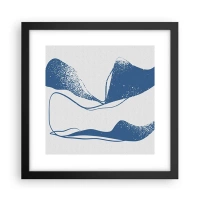 Poster in einem schwarzem Rahmen - Weiße und blaue Wellen - 30x30 cm