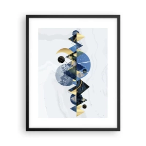 Poster in einem schwarzem Rahmen - Dynamik von Gold und Azurblau - 40x50 cm